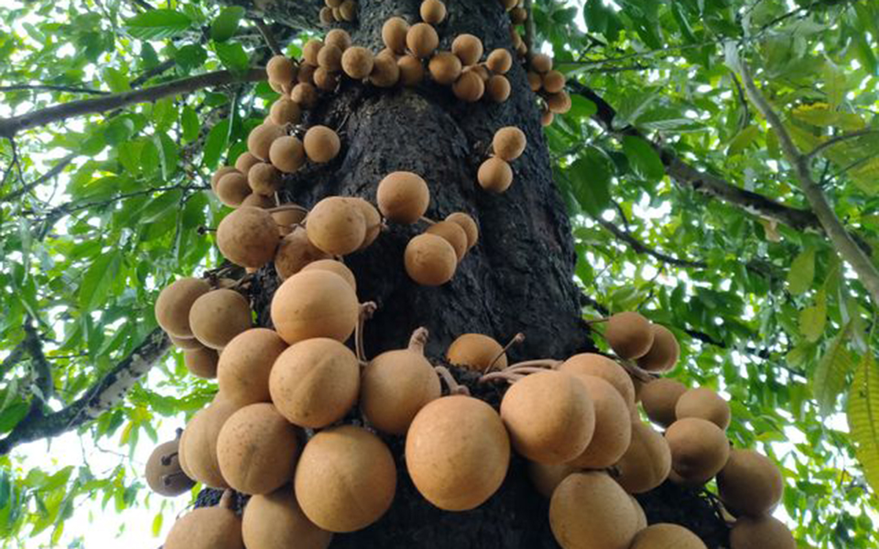 It is also planted as an ornamental tree. The tree produces both male and female flowers, with male flowers occurring on the upper trunk and female flowers on the lower trunk. The Kepel fruit, also called the Kepel Apple, is about as large as an adult’s fist ✊🏽 (Kepel; kepalan tangan in Indonesia), brown in color and containing 4 – 6 seeds.